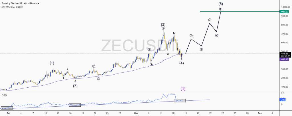 به نظر می‌رسه ما وسط یه ساختار موج الیوت کلاسیک هستیم. فکر می‌کنم یه موج صعودی قوی (۳) رو تکمیل کردیم و همین الان یه اصلاح ABC برای موج (۴) رو تموم کردیم که به نظرم درسته. قیمت یه حمایت قوی رو نزدیک میانگین متحرک ساده ۵۰ دوره‌ای پیدا کرده، و OBV هم داره قدرت رو نشون میده و حتی در طول اصلاح، خط روند خودش رو حفظ کرده. هر وقت در گذشته به اون خط روند OBV می‌خوره، بالا می‌پره.