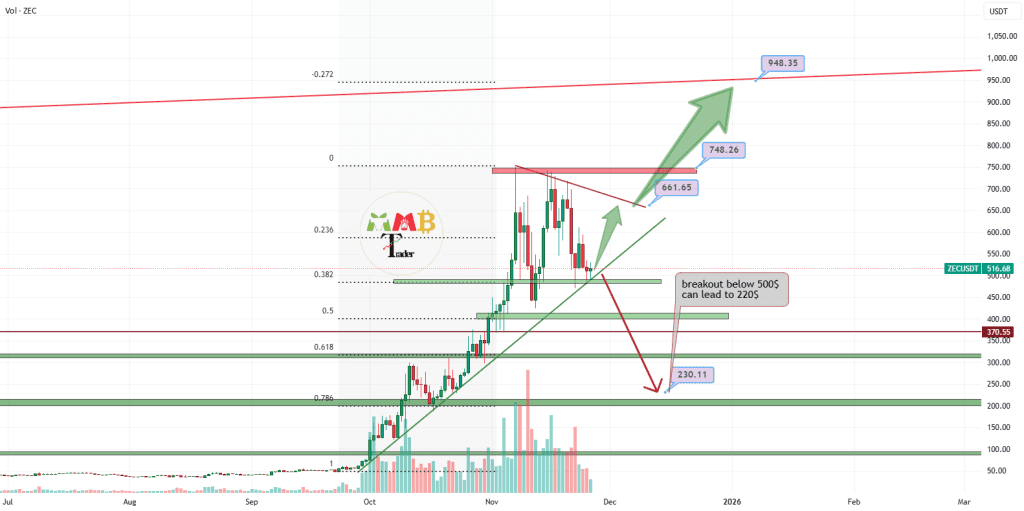 ZECUSDT به زودی حداقل به ۶۵۰$ دوباره میرسه