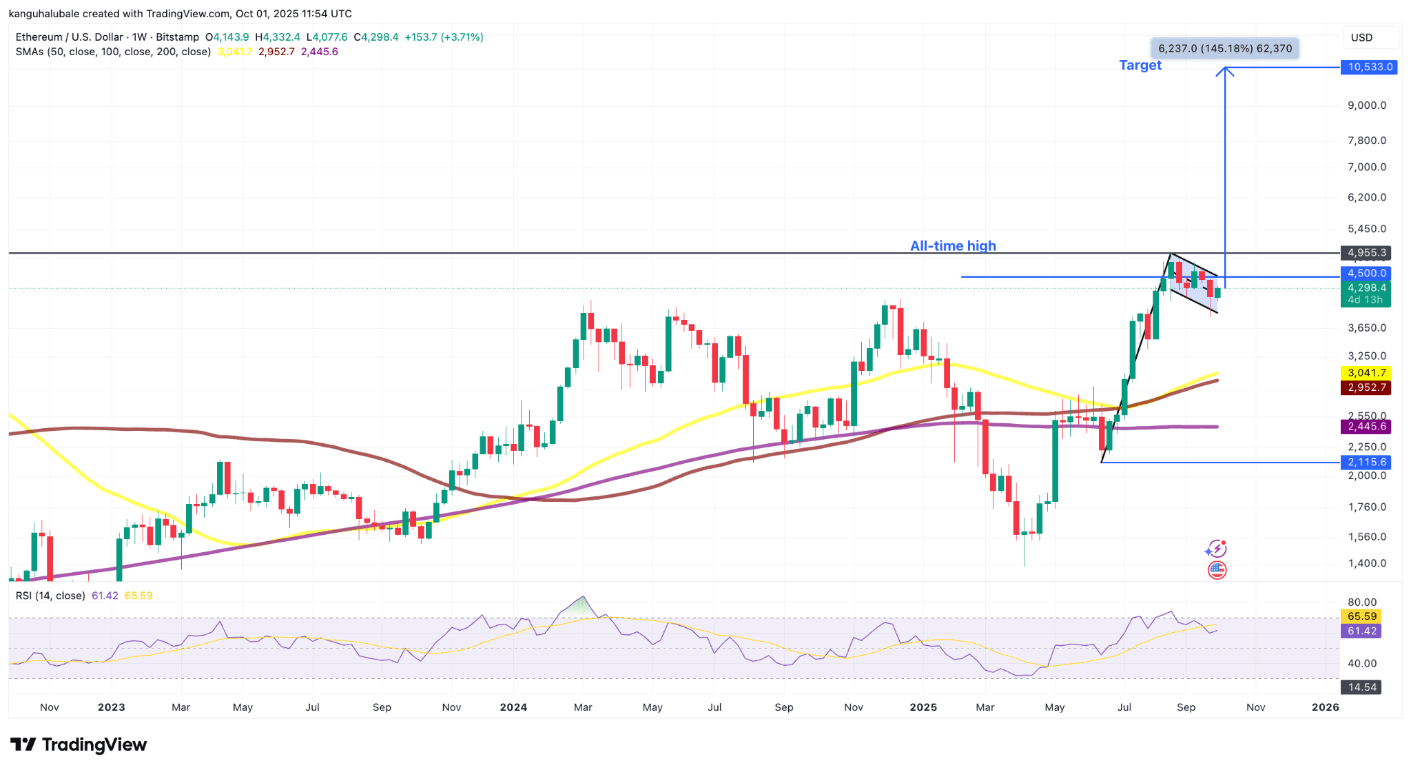 سیگنال صعودی اتریوم در تایم فریم هفتگی: آیا ETH به ۱۰٬۰۰۰ دلار میرسد؟