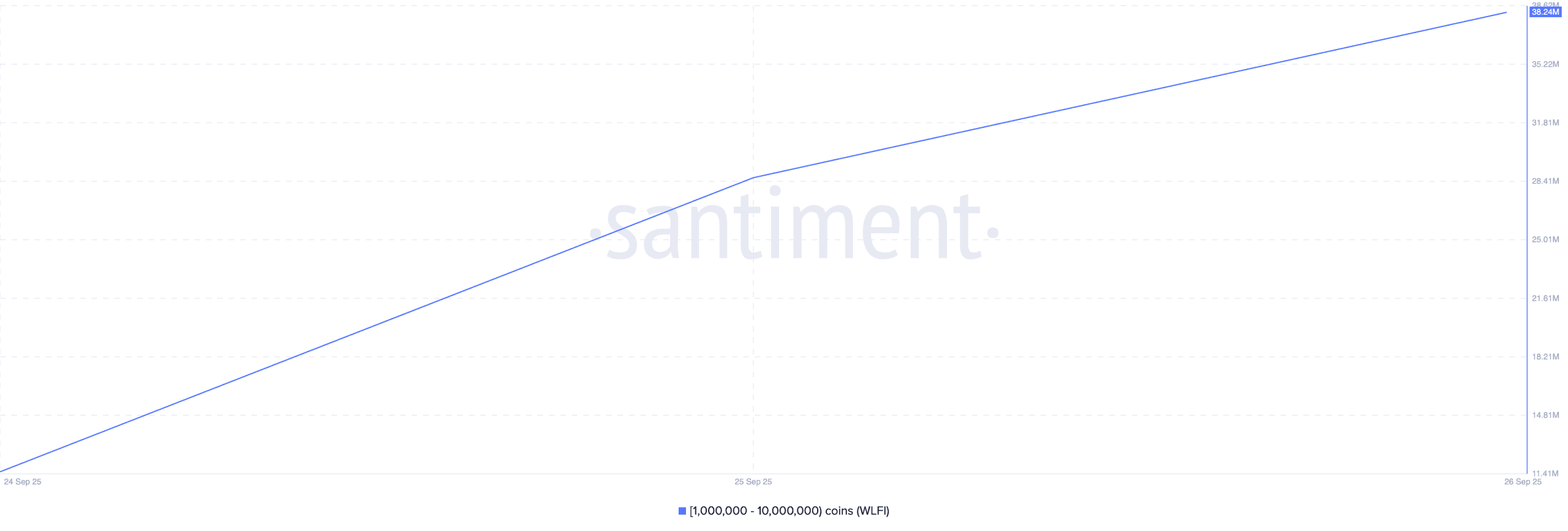 طبق دادههای Santiment، آدرسهای حاوی ۱ تا ۱۰ میلیون WLFI، طی این هفته ۲۶.۷۲ میلیون توکن به ذخایر خود اضافه کردهاند. همچنین تیم World Liberty Finance اعلام کرده که این هفته مکانیزم خرید و توکنسوزی را اجرا خواهد کرد.