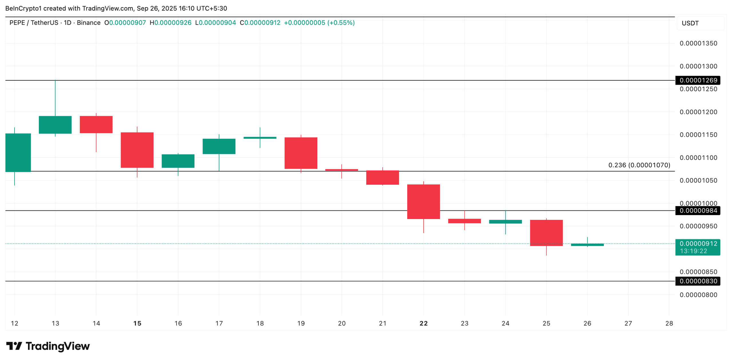 اگر فعالیت نهنگها ادامه پیدا کند، قیمت پپه رشد کرده و میتواند به ۰.۰۰۰۰۰۹۸۴ دلار برسد. اما در صورت کاهش خرید نهنگها، این آلت کوین در کوتاهمدت آسیبپذیر شده و احتمال افتش تا ۰.۰۰۰۰۰۸۳۰ دلار وجود دارد.