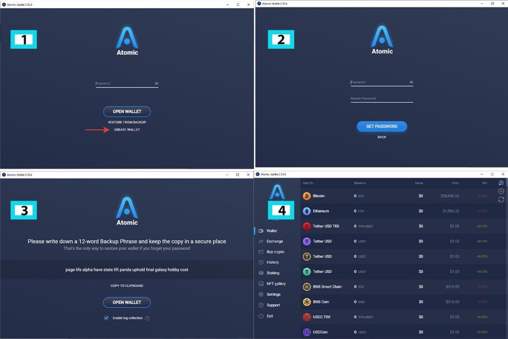 همانطور که در مطالب بالا گفته شد، کیف پولهای زیادی برای نگهداری شیبا اینو وجود دارند که در این قسمت، روش نصب اتمیک والت را توضیح میدهیم. ابتدا باید یک فرآیند ساده را برای ایجاد کیف پول، طی کنید. فایل نصبی سیستم عامل خود را از وبسایت رسمی، دانلود کرده و برنامه را نصب کنید. اگر دنبال کیف پول بر روی دسکتاپ هستید، نصبکننده installer را دانلود کنید. اما اگر برنامه را برای موبایل خود میخواهید، به سادگی از طریق App Store و Google Play، قابل دانلود است. به طور کلی کیف پول اتمیک که یکی از بهترین کیف پول های شیبا است، برای ویندوز، مک، لینوکس، اندروید و IOS در دسترس است. پس از انجام این کار، کیف پول اتمیک را اجرا کنید.