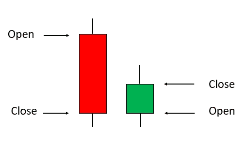 هارامی نزولی یک شمع به رنگ سبز و بلند است و به دنبال آن یک شمع قرمز کوچکتر تشکیل میشود و همچنین شمع قرمز کاملاً در بدنه شمع سبز جا میشود.