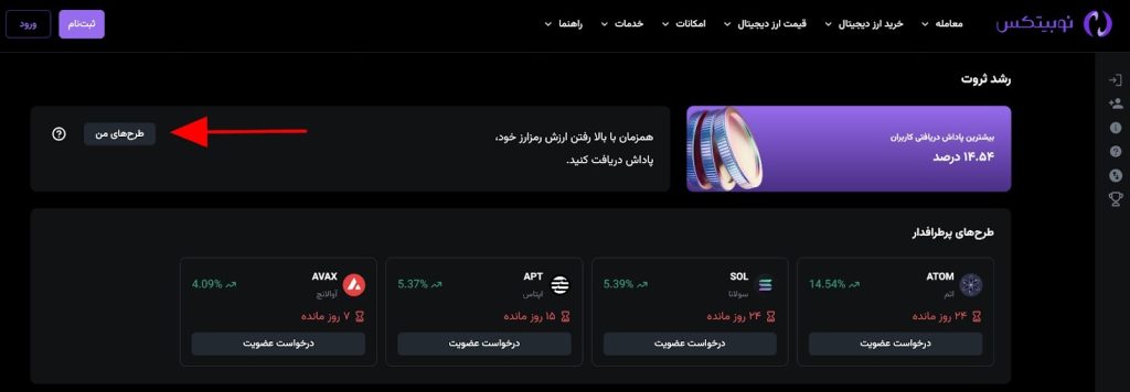 مدت طرحها: طرحهای «رشد ثروت» هم مانند دو محصول قبلی مدتدار هستند. برای مثال، طرحهای ۱۵ روزه، ۳۰ روزه و… وجود دارند. تنها تفاوت این است که برخلاف استیکینگ و ییلدفارمینگ، محدودیت زمانی ندارید و هر وقت بخواهید، میتوانید درخواست مشارکت بدهید.
