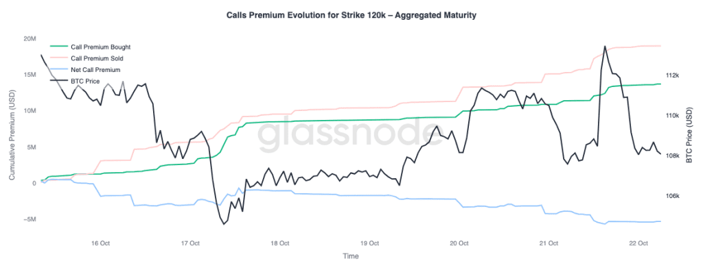 این وضعیت نشان میدهد که بازار حاضر است برای پوشش ریسک در برابر سقوط قیمت هزینهی بیشتری بپردازد و در عین حال، تمایل محدودی به گرفتن سود از رشد قیمت همچنان وجود دارد. یعنی یک تعادل ظریف بین ترس کوتاهمدت و چشمانداز مطمئن بلندمدت در بازار شکل گرفته است. رالی کوچک ۲۱ اکتبر (۲۹ مهر) حساسیت بازار را بهخوبی نشان داد؛ در طی این رالی، پریمیوم قراردادهای پوت در عرض چند ساعت نصف شد که نشاندهنده واکنش سریع و احساسی سرمایهگذاران آپشن بود.