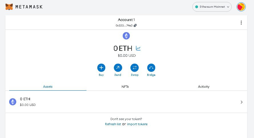 ۴. بعد از اتصال با کیف پول با تصویر زیر مواجه میشوید که شماره حساب شما در کیف پول و تعداد اتریوم را نمایش میدهد.