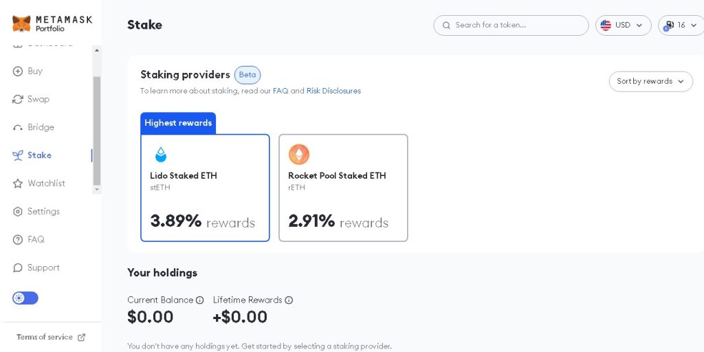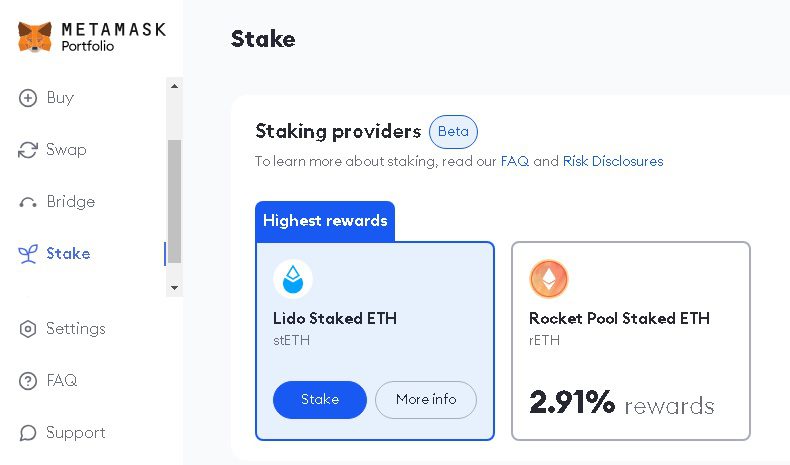 استیکینگ یک ویژگی جدید در کیف پول متامسک است که به کاربران اجازه استیک کردن اتریوم را میدهد. کاربران میتوانند اتریوم را از طریق پروتکلهای Lido و Rocket Pool به اشتراک بگذارند و توکنهای سهامداری Lido و Rocket Pool خود (stETH و rETH) را مشاهده کنند. علاوه بر این، مشتریان میتوانند stETH و rETH خود را از طریق MetaMask Swaps با صرف هزینههای خاصی به ETH برگردانند.