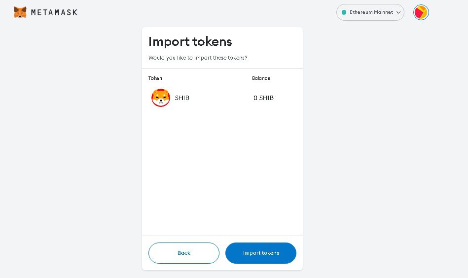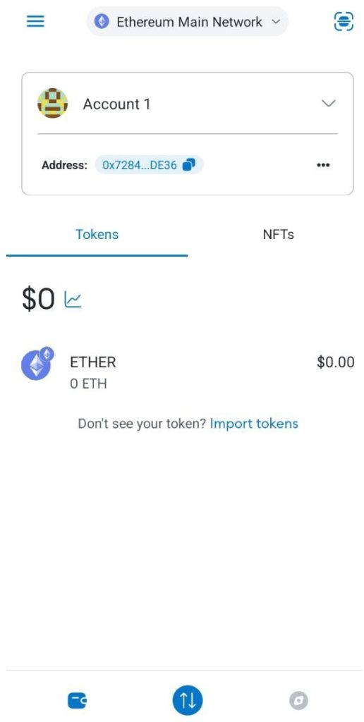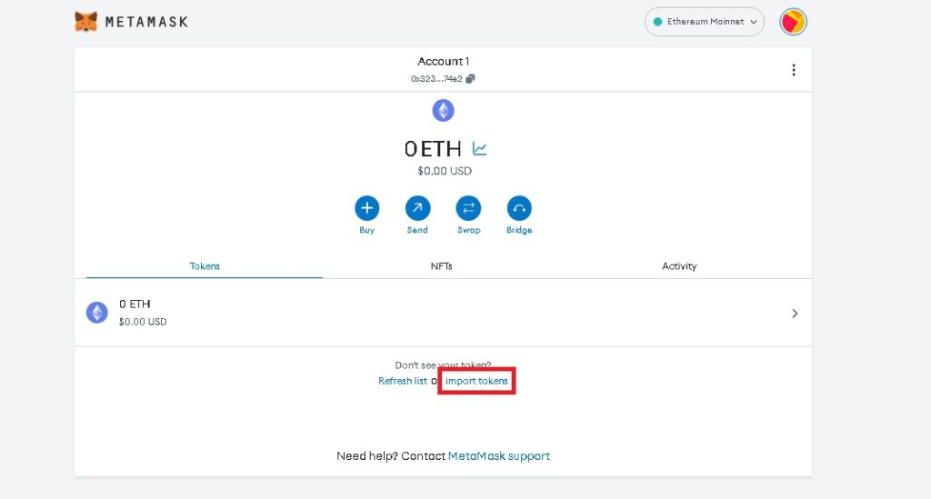 ۶- در آخرین قسمت وارد بخشی شده که باید بر روی گزینه Import Tokens کلیک کنید تا ارز مورد نظر در کیف پول متامسک اضافه شود.
