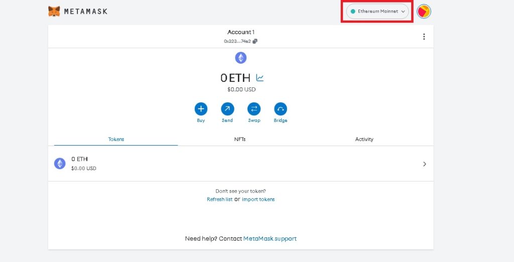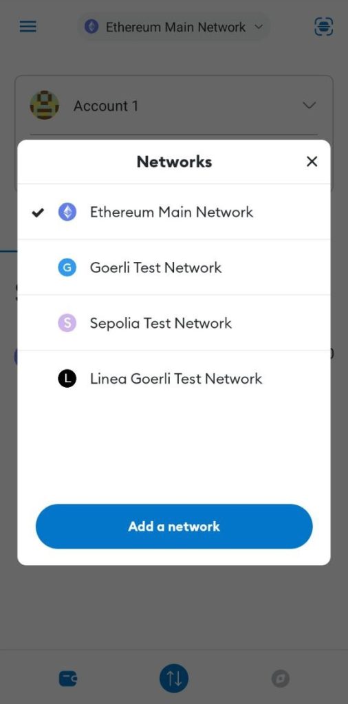 برای مشاهده شبکههای کیف پول متامسک خود میتوانید روی گزینه Ethereum Main Network بزنید.