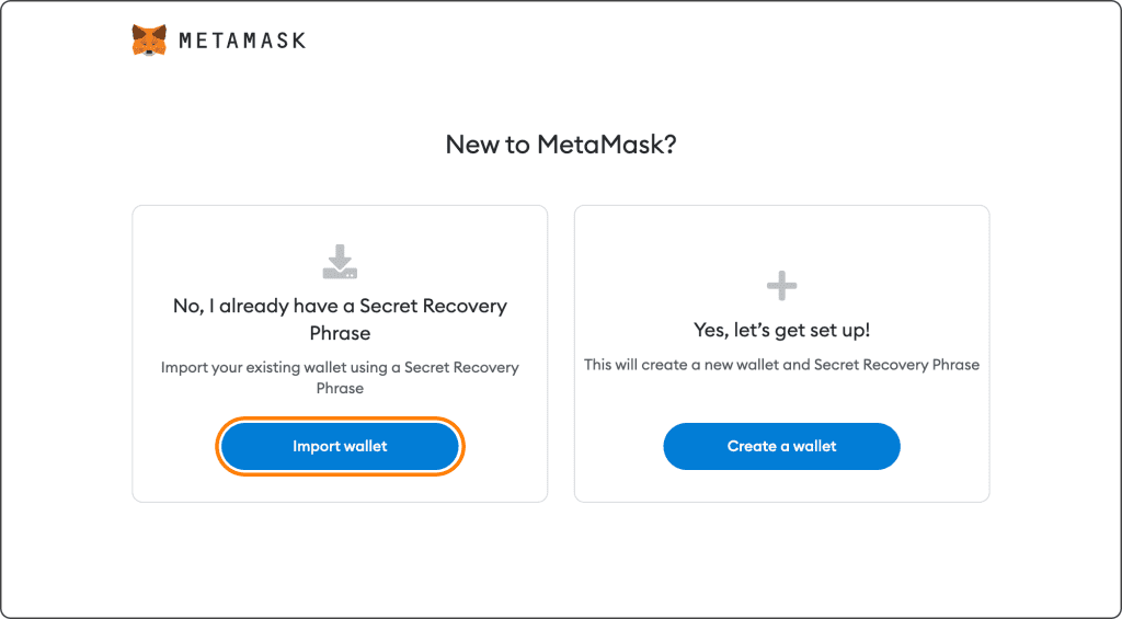 بعد از نصب نرمافزار متامسک، باید یک کیف پول جدید ایجاد کنید. در ادامه ما این مراحل را در نسخهی وب انجام میدهیم. توجه داشته باشید که انجام مراحل در نسخه Android و iOS نیز مشابه است.