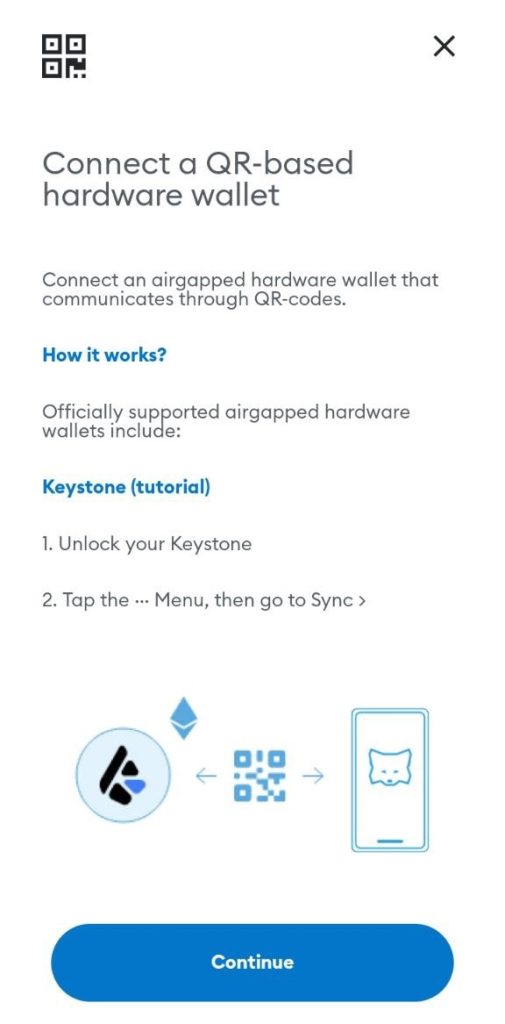 با انتخاب گزینه Continue وارد مرحله اسکن QR Code میشوید و اتصال انجام میشود.