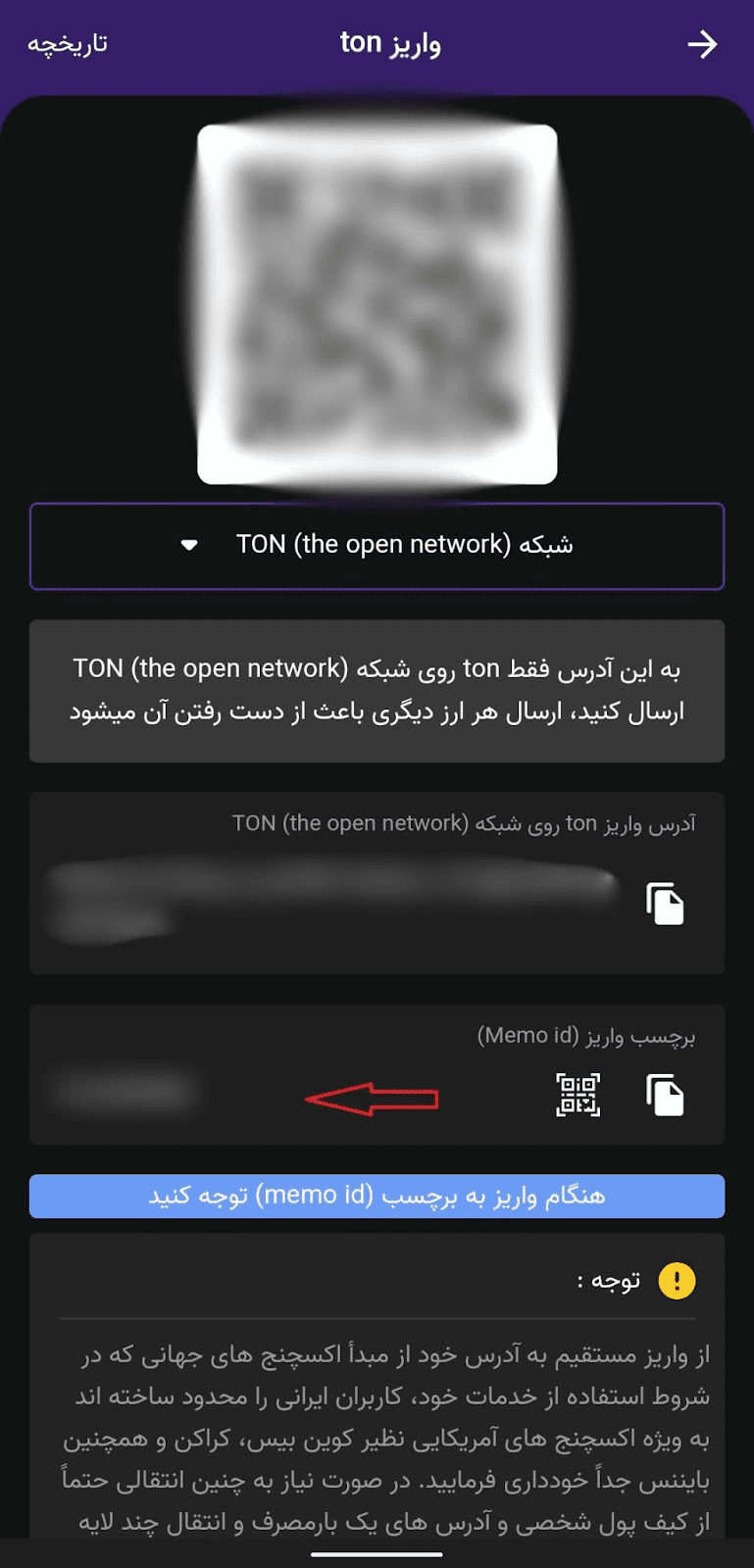 اگر میخواهید ارزهای دیجیتال را از کیف پول مای تون ولت به صرافی نوبیتکس واریز کنید، حتما باید کامنت مربوطه را نیز در کیف پول مای تون ولت وارد کنید. در غیر این صورت، توکنها به صرافی نوبیتکس واریز نمیشوند. آدرس واریز و کامنت مربوط به آدرس را میتوانید در صفحه واریز صرافی نوبیتکس مشاهده کنید.