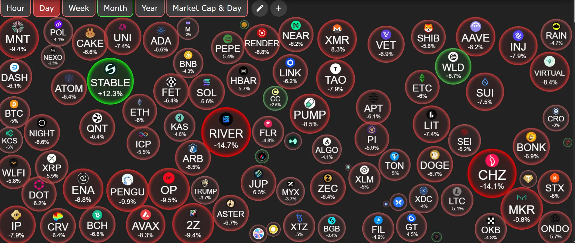 اما در بازار کریپتو، احساسات ریسکگریزی به شدت اثر گذاشت. قیمت بیت کوین تاکنون تا اطراف ۸۴٬۰۰۰ دلار کاهش یافته و ارزهای برتر هم با ریزش شدیدی مواجه شدند.
