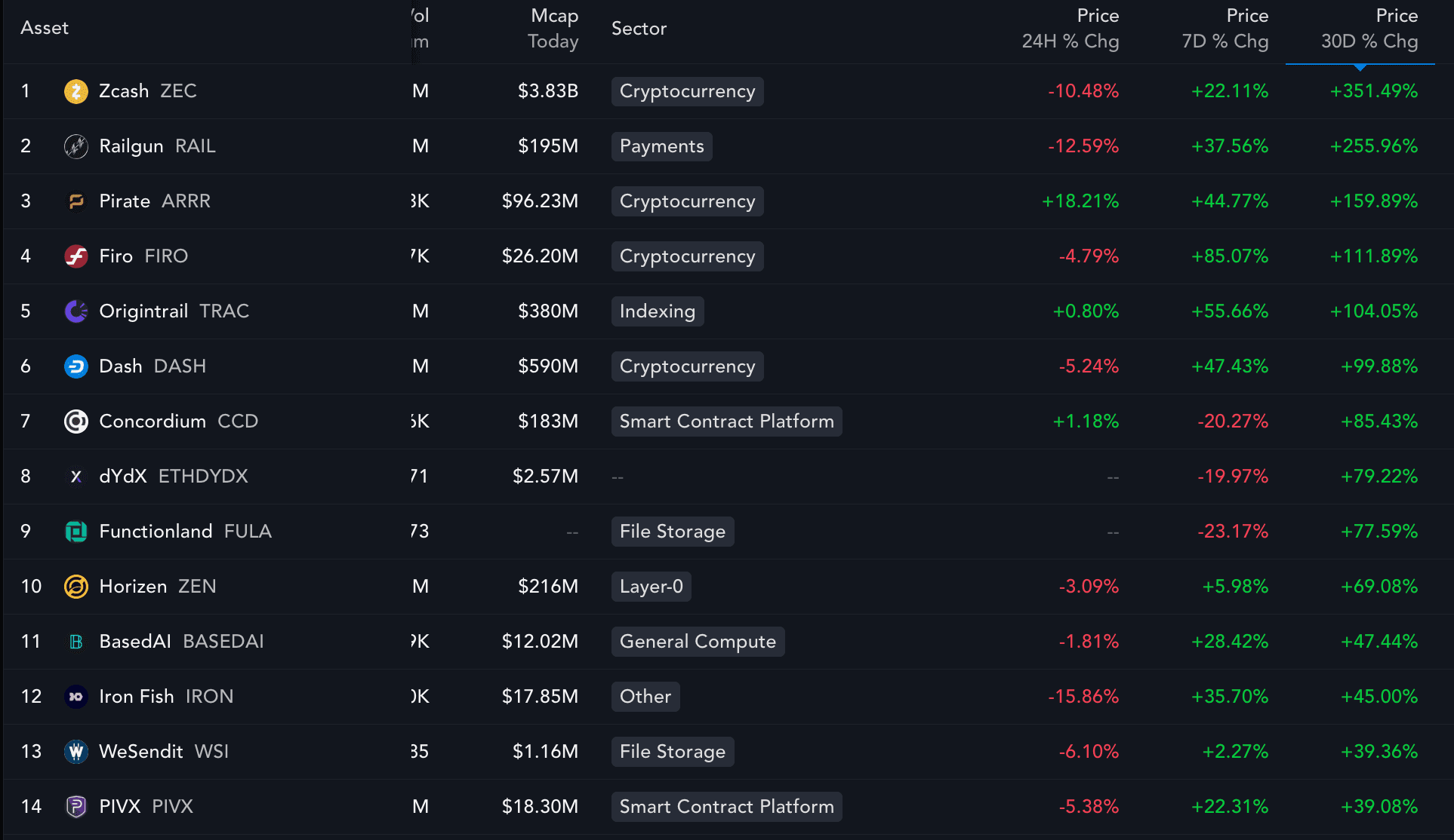 پس از سقوط شدید بازار کریپتو، کوینهای حریم خصوصی مثل زیکش (ZEC) و دش (DASH) رشد چشمگیری داشتند.