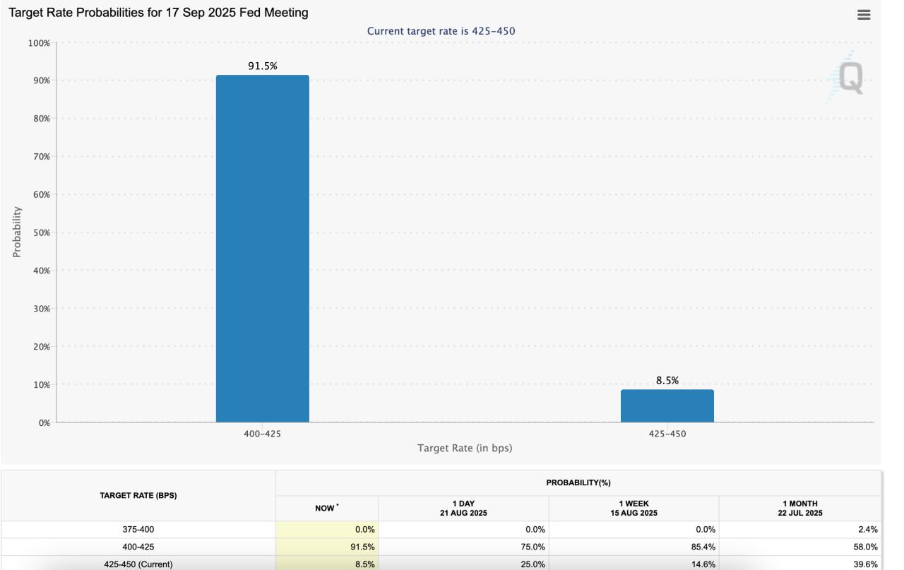 این سخنرنی باعث شد قیمت اتریوم به ۴٬۷۰۰ دلار و قیمت بیت کوین به ۱۱۶٬۰۰۰ دلار برسد. احتمال کاهش نرخ بهره در ماه بعد هم از اطراف ۷۰ درصد به بالای ۹۰ درصد رسید.