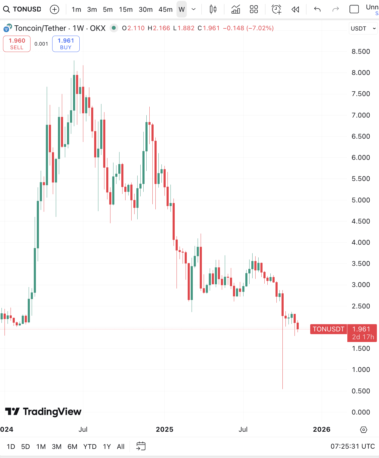 بسیاری از هولدرهای تون کوین به خاطر حمایت دوروف و تلگرام از این شبکه آن را خریداری کرده بودند. با وجود این قیمت تون کوین پس از عبور از رکورد ۸ دلار نتوانست رشد کند و دیروز به زیر ۲ دلار سقوط کرد.
