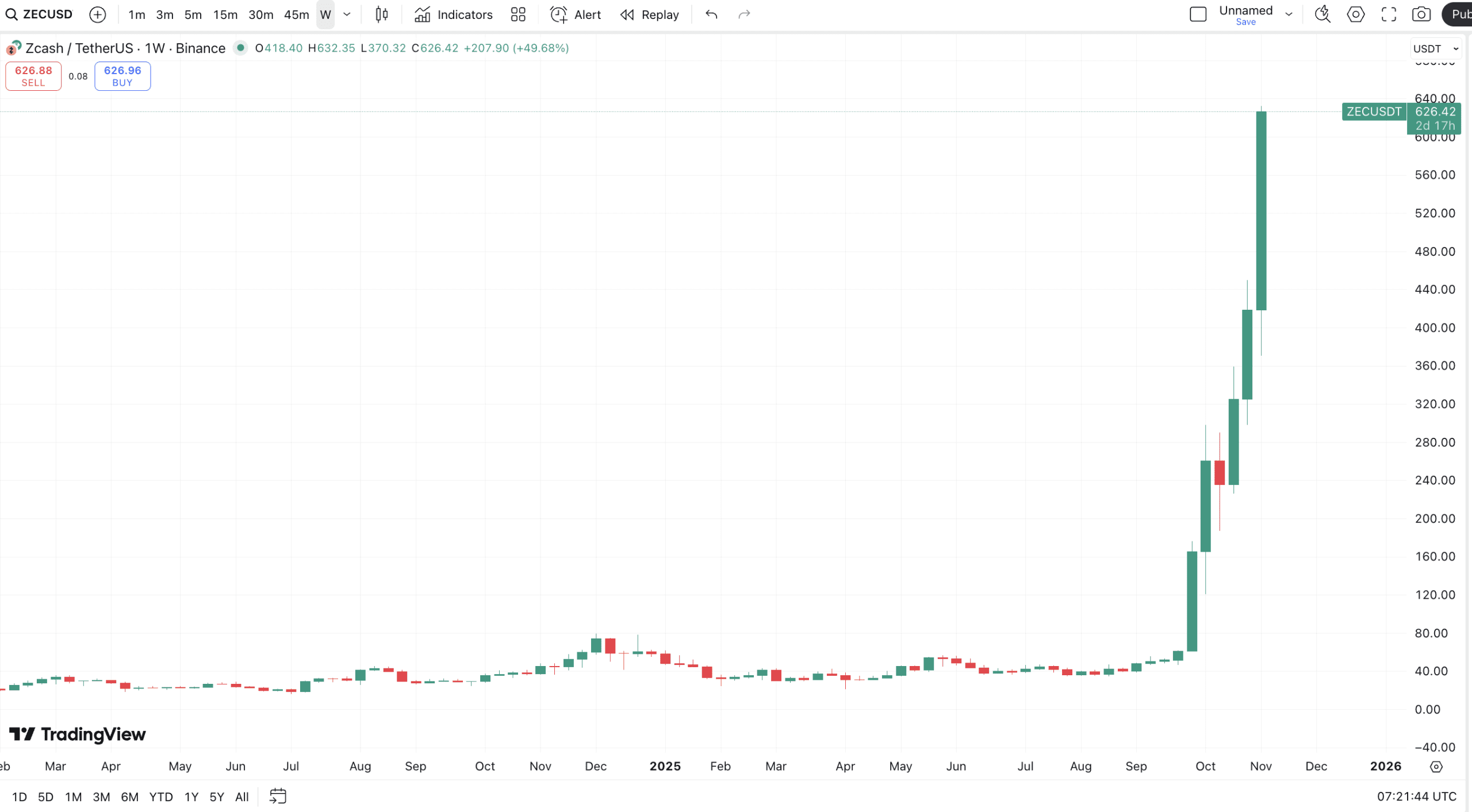 به گزارش کوین تلگراف، قیمت زی کش برای نخستین بار از سال ۲۰۱۸ بالای ۶۰۰ دلار معامله میشود. رشدی که با حمایت برخی از چهرههای برجسته مانند آرتور هیز، ناوال راویکانت، مِرت ممتاز، انسِم و تردگای همراه بوده است. آنان ماههاست از مزایای حریم خصوصی در زیکش سخن میگویند و پیشبینیهای قیمتی جسورانهشان، باعث افزایش چشمگیر ارزش ZEC در مقایسه با سایر آلتکوینها شده است.