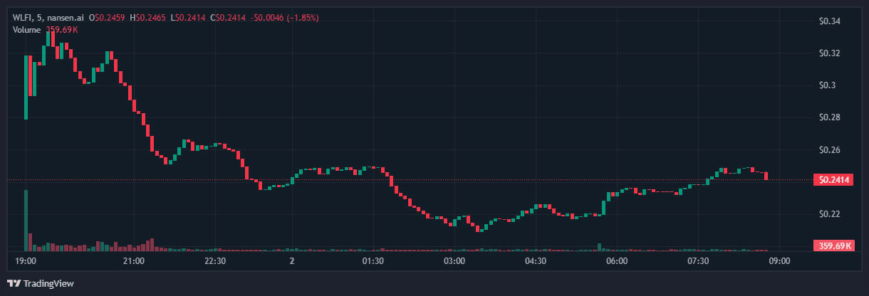 • WLFI نسبت به اوج خود حدود ۴۰ درصد سقوط کرد.