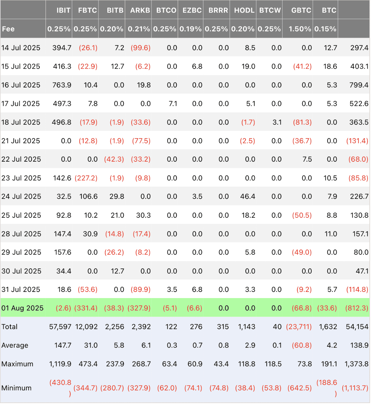 قیمت بیت کوین هم همبستگی آن با بازار سهام آمریکا روزهای قبل به ۰.۹ رسیده‌ بود؛ تا ۱۱۲٬۷۰۰ دلار سقوط کرد. این نااطمینانی‌ها تاثیرش را روی ETFهای اسپات بیت کوین هم گذاشت. به عبارت دقیق‌تر صندوق‌های مذکور روز قبل بیشتر از ۸۰۰ میلیون دلار جریان خروجی داشتند.