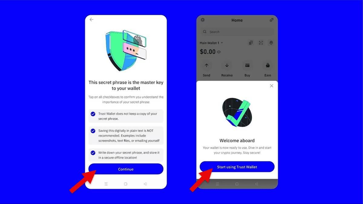 - وقتی که کیف پول شما راهاندازی شد، روی گزینه شروع استفاده از تراست والت (Start using Trust Wallet) بزنید.